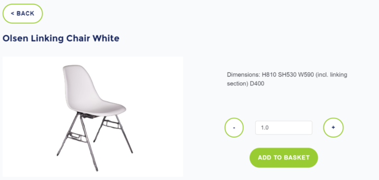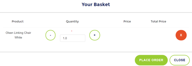 To order an item, click on the image from the home screen, which will then show more details and then the option to ‘Add to Basket’. Adjust the quantity accordingly, and click the green button.